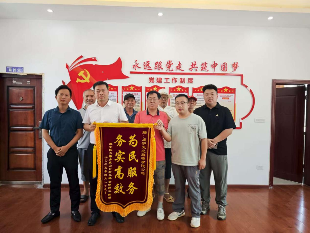 2025年7月24日,大幕鄉(xiāng)泉山口村4名村民代表來(lái)到區(qū)經(jīng)發(fā)集團(tuán),向經(jīng)發(fā)集團(tuán)授予錦旗,錦旗上繡著“高效服務(wù)辦實(shí)事,熱心為民暖人心”,以此表彰其在“大幕鄉(xiāng)小田并大田”項(xiàng)目中取得的卓越成果。